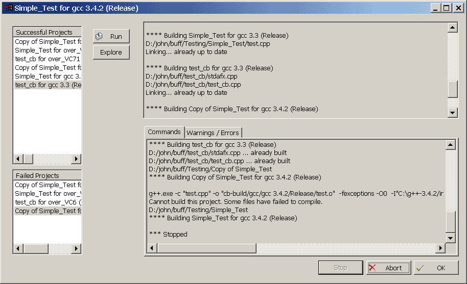 "Build Statistics". Cross Builder computes statistics (CPU time,
