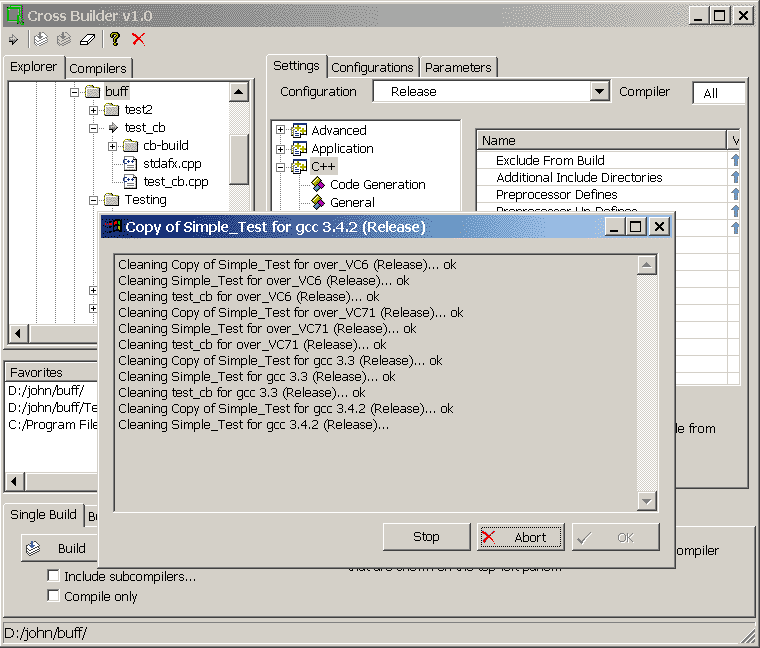 What is Cross Builder Building a project Building multiple projects Cleaning up... Configure compiler Modifying settings Selecting configurations/ Selecting