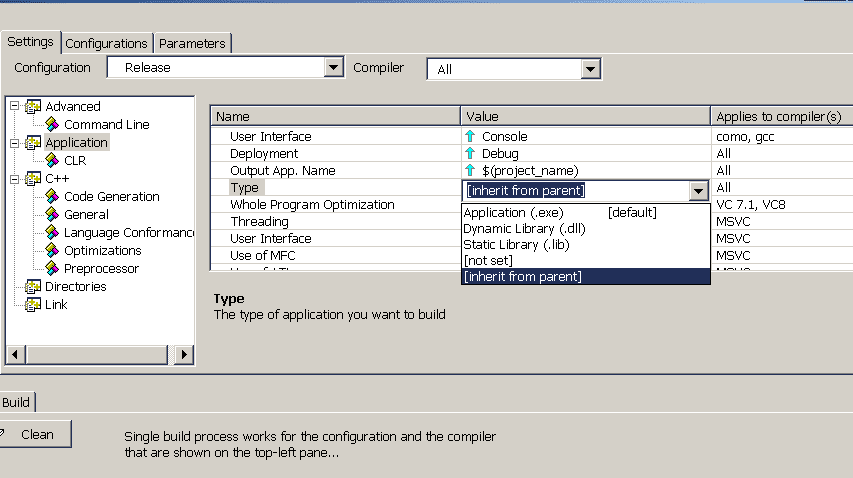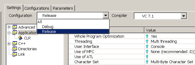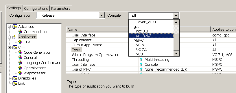 Miscrosoft compilers), "VC 7.1", gcc (all gcc compilers), VC8